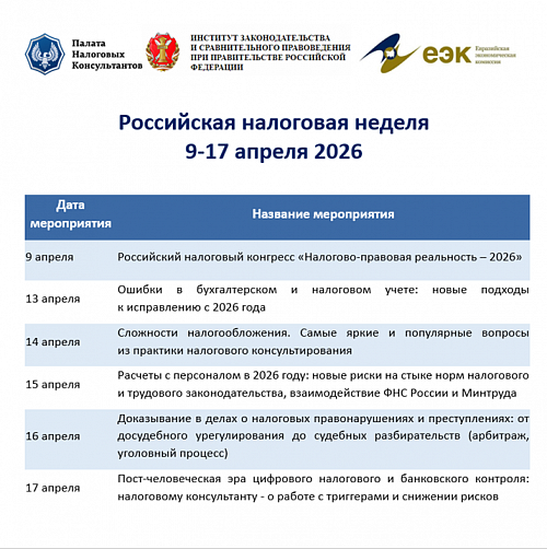 Институт законодательства и сравнительного правоведения при Правительстве РФ – соорганизатор Российской налоговой недели